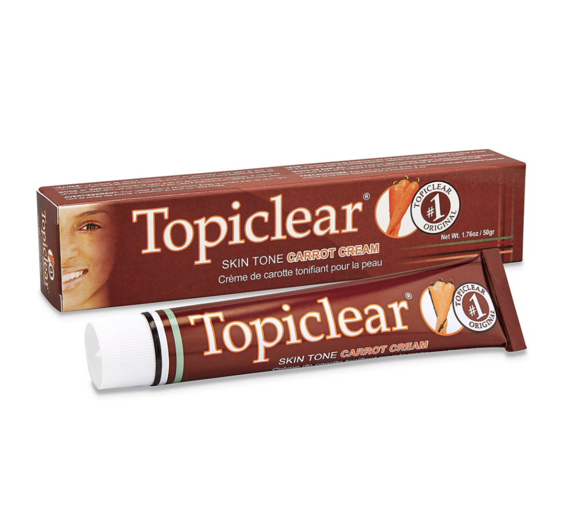 Topiclear Carrot Cream Gradually fades skin discolorations such as age spots, frekles, scars. Active Ingredients: