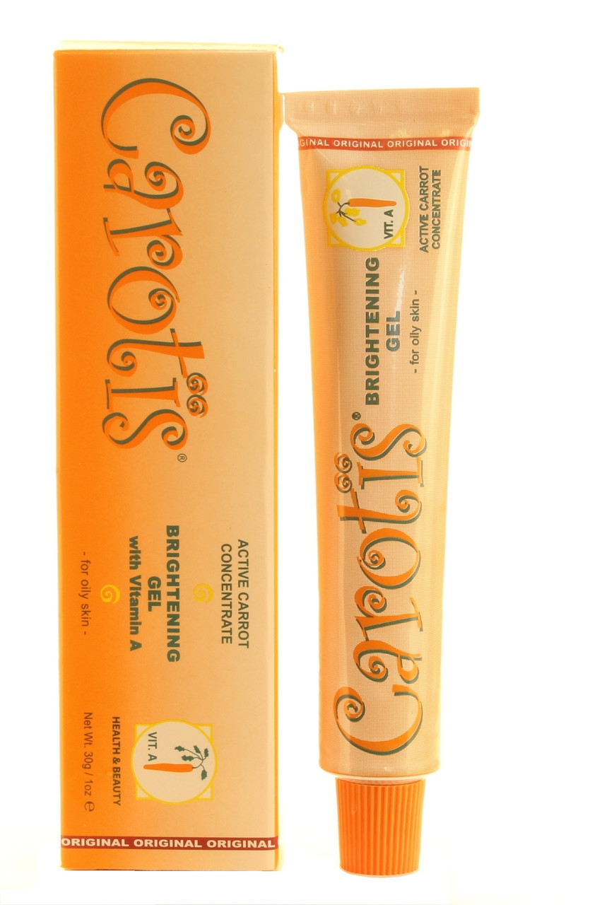 Carotis Brightening Cream with Vitamin A. Active Carrot's Concentrate. Carotis Brightening Cream deeply nourishes and moisturizes skin while working to even out skin tone, improving clarity and radiance. Promotes softer and smoother skin. Directions: Apply small amount twice daily during 20 days on the areas to be lightened, or use as directed by doctor. Massage gently until complete absorption. Limit exposure to sunlight. Weight: 50gr / 1.76 oz Made in France.