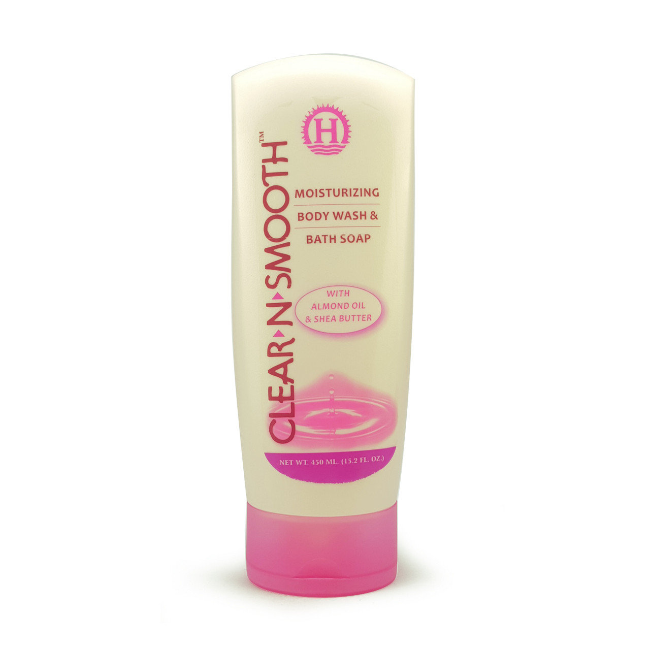 CLEAR-N-SMOOTH moisturizing body wash and bath soap is formulated with gentle skin cleasing agents to privide exeptional cleaning without stripping the body of its natural oils. Clear-N-Smooth body wash and bath soap also contains almond oil and shea butter to moisturize the skin. So you skin feels as smooth and silky after washing as before.